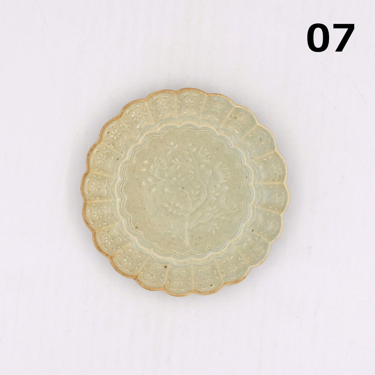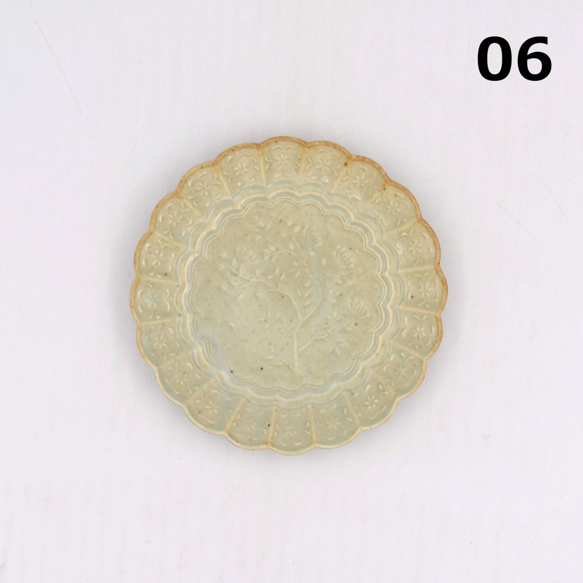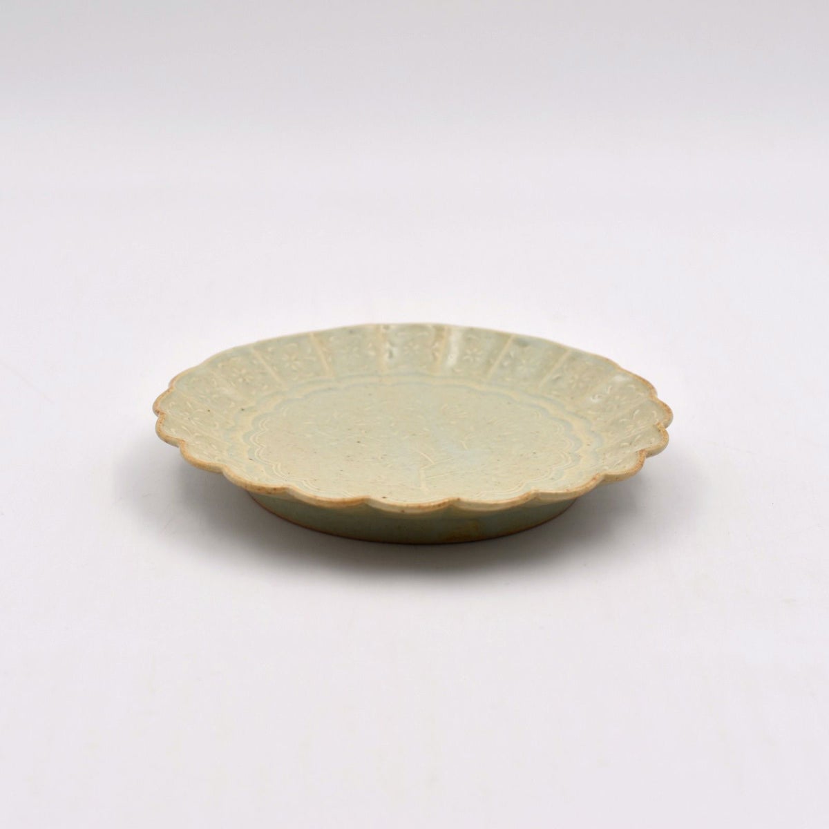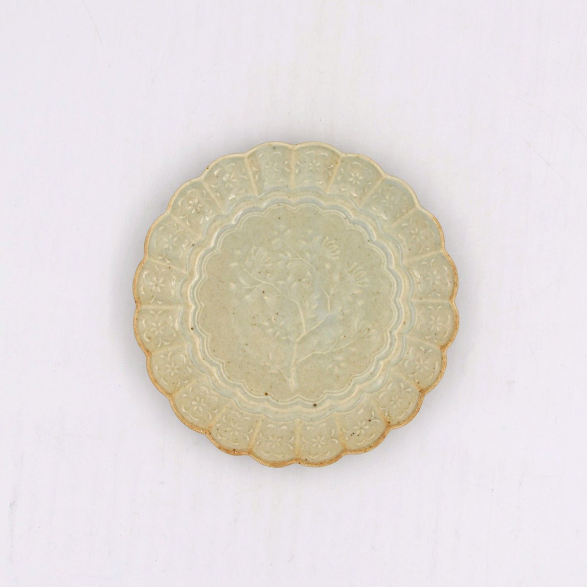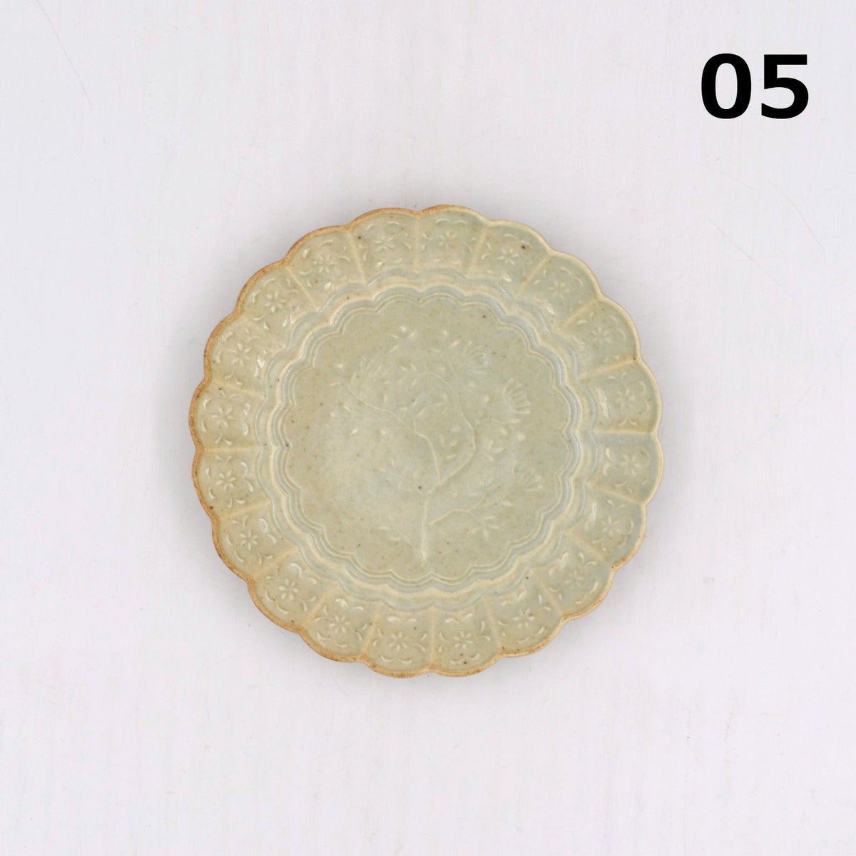 4. 青磁陽刻菊平皿 小
