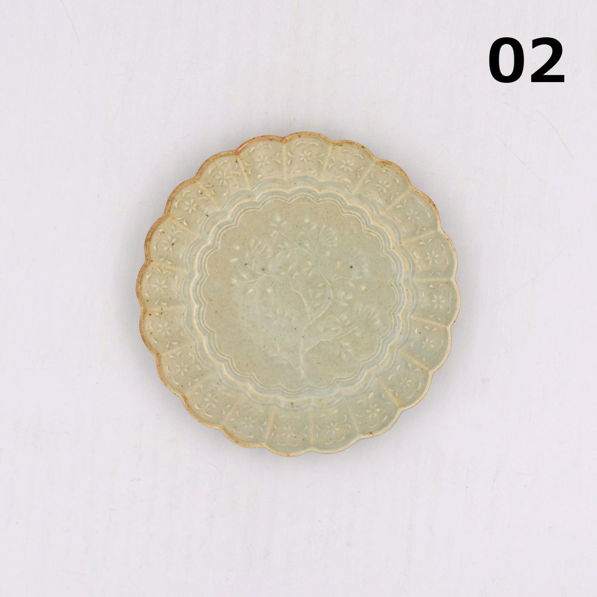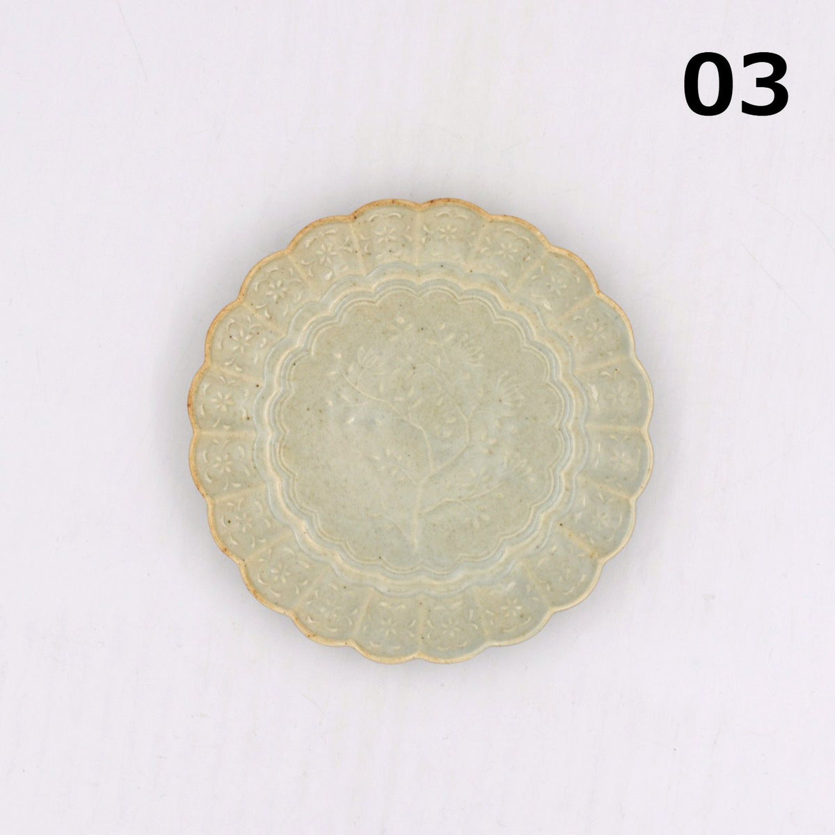 3. 青磁陽刻菊平皿 小