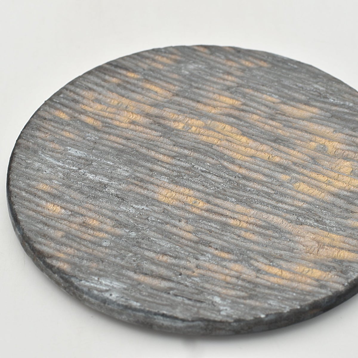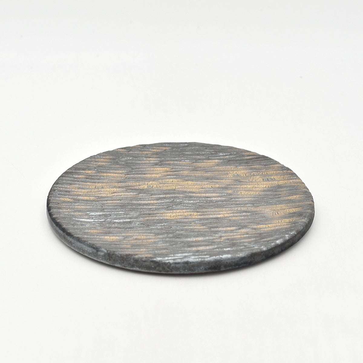 岡村宜治 黒釉 鎬丸平皿(中)