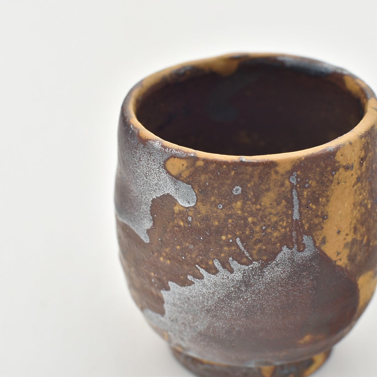 3. 黄釉 泥打ち掛け湯呑み