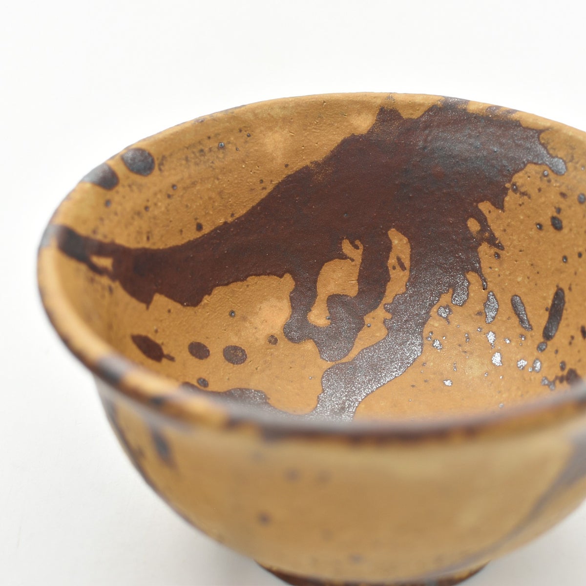 4. 黄釉 泥打ち掛け茶碗