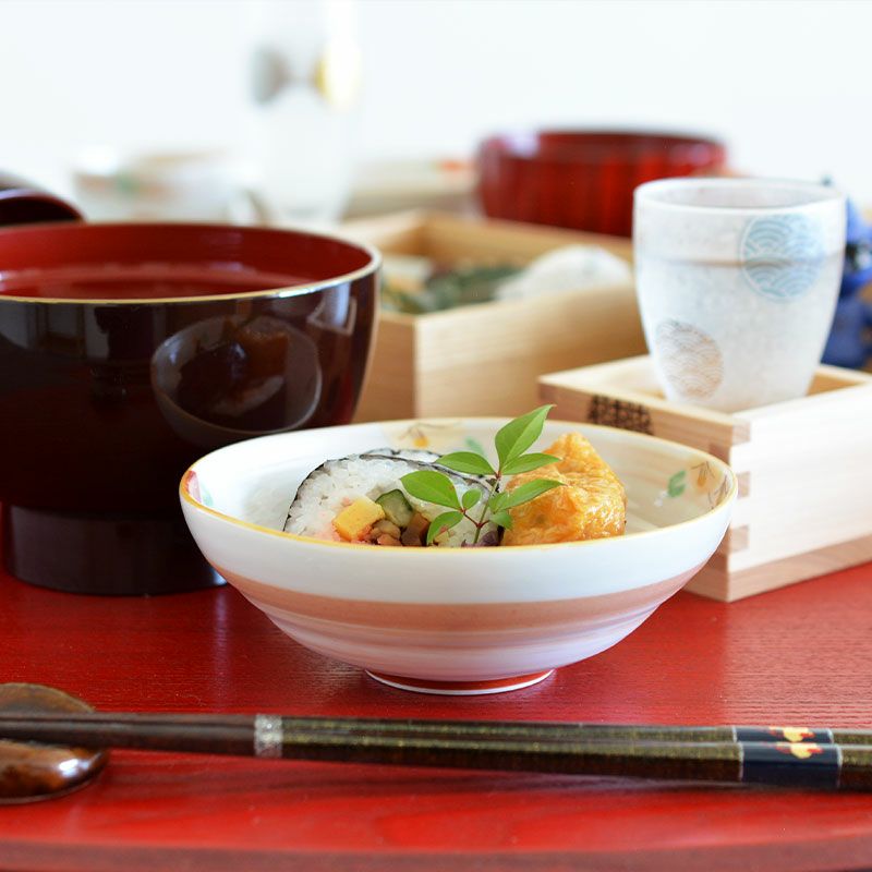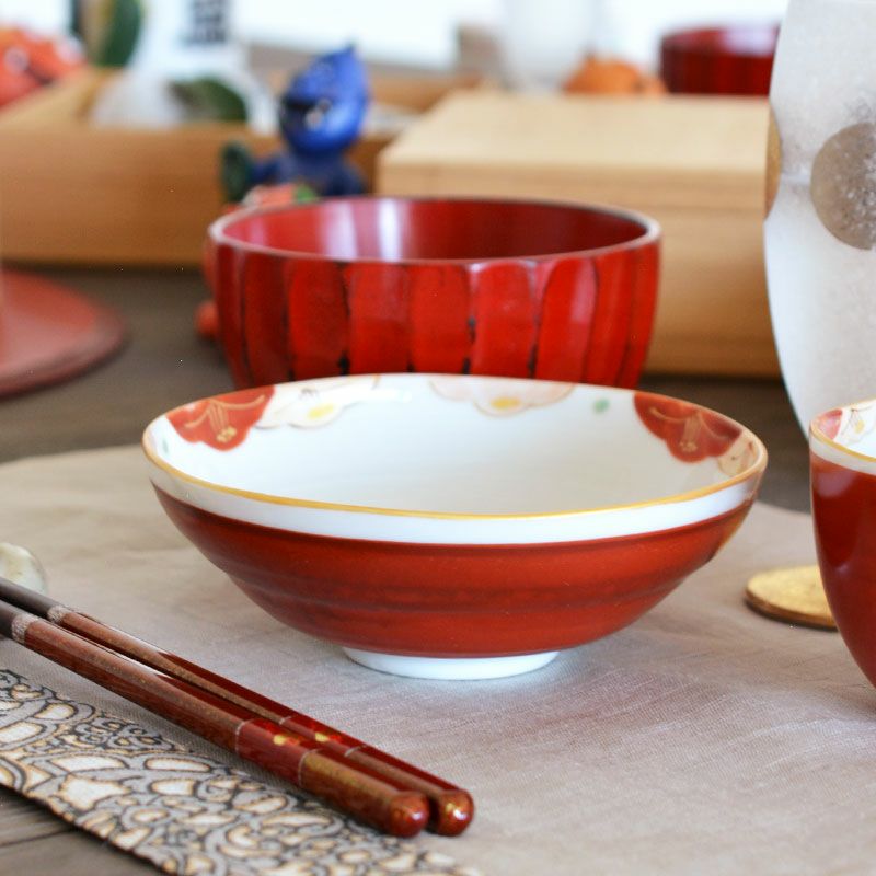 赤絵 流水椿 小鉢ペアは岐阜県神社庁御用窯である岐阜県多治見市の蔵珍窯で作られた器です。