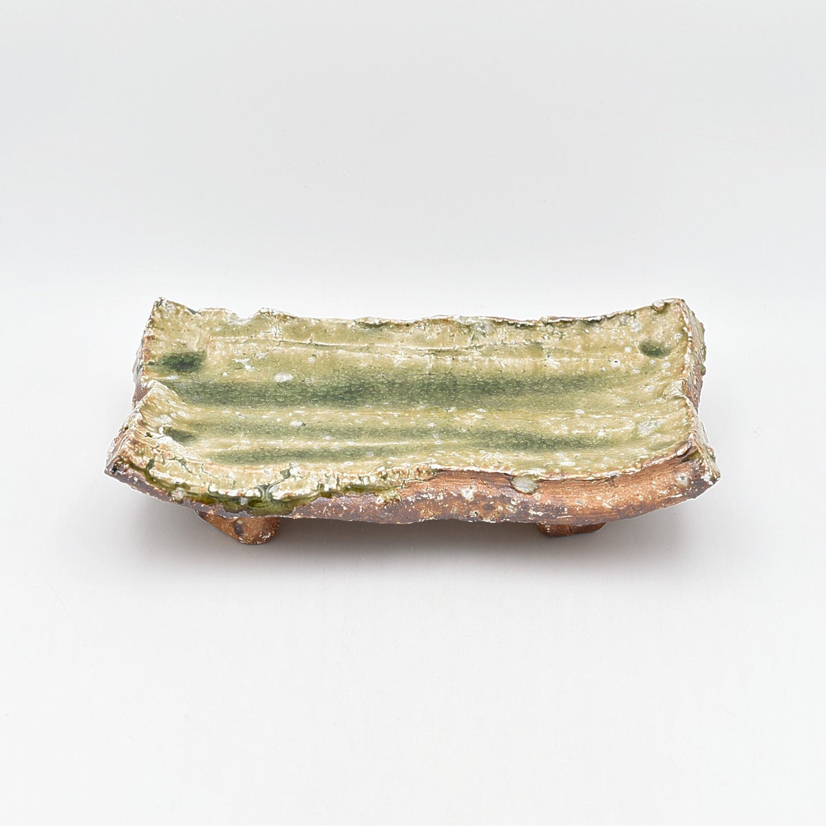 4. 灰釉波板皿(20x14cm)