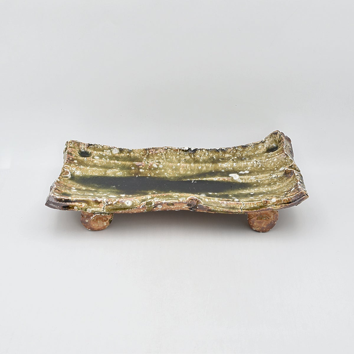 4. 灰釉波板皿(30x17cm)