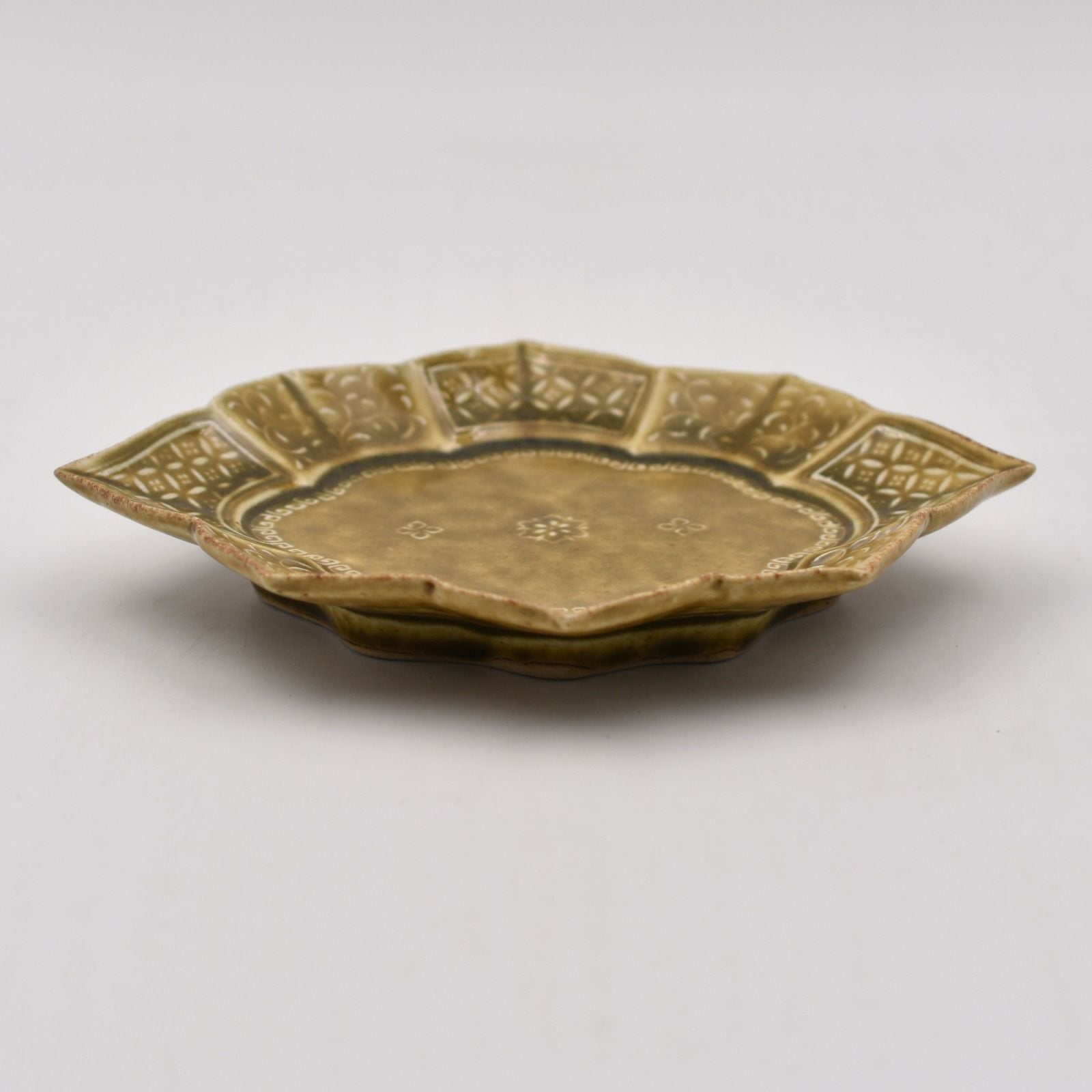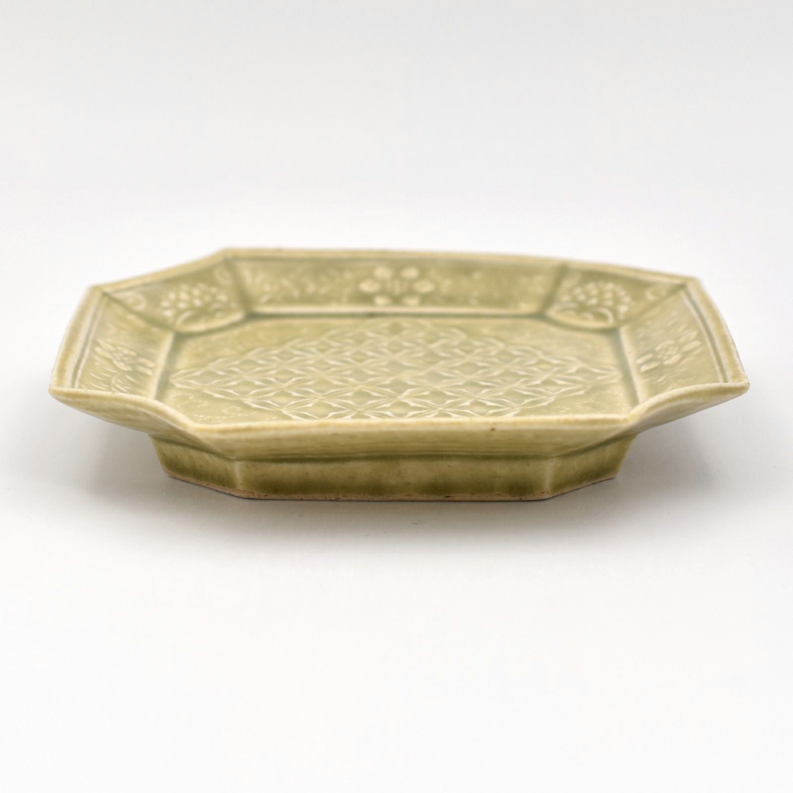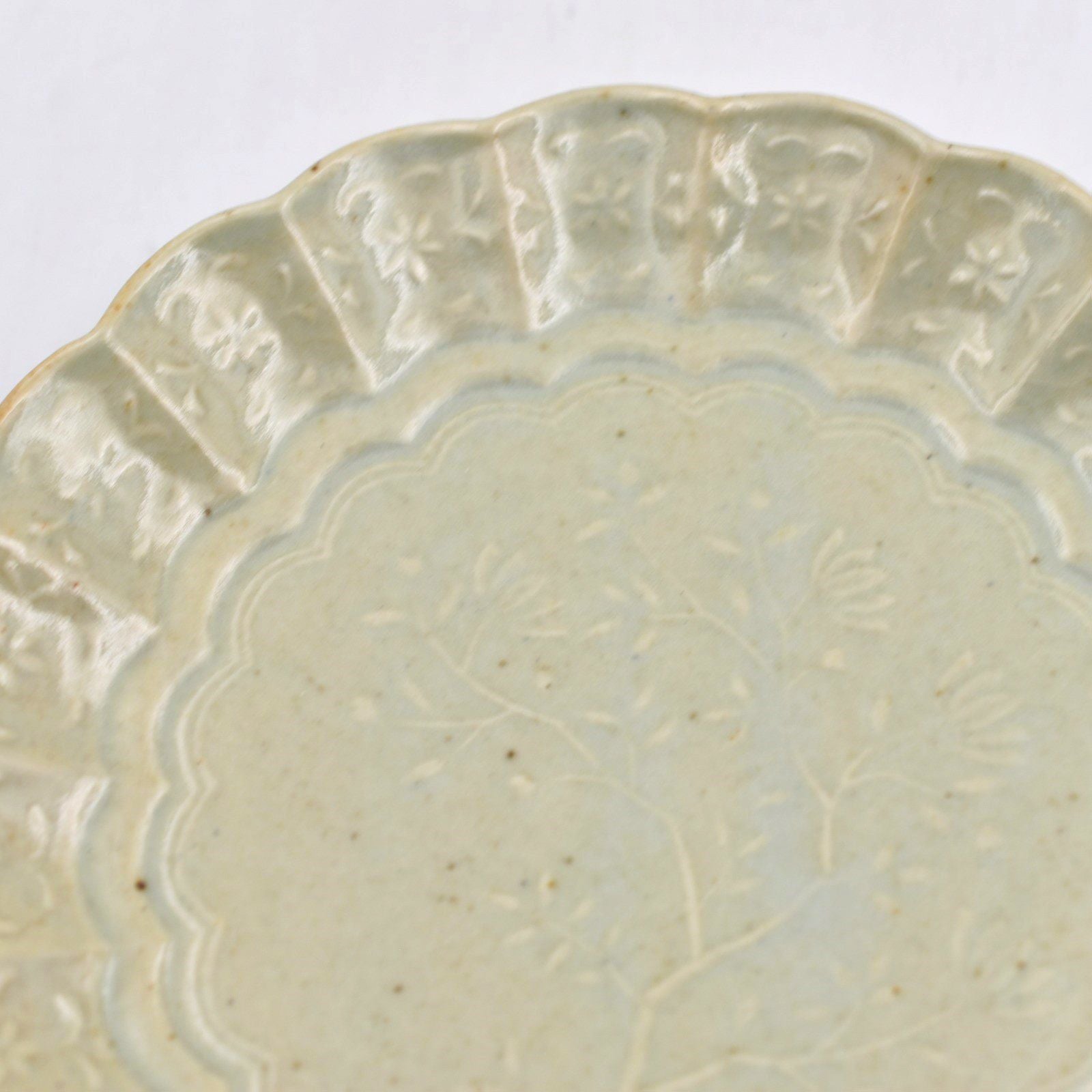 石田裕哉 青磁陽刻菊平皿 小