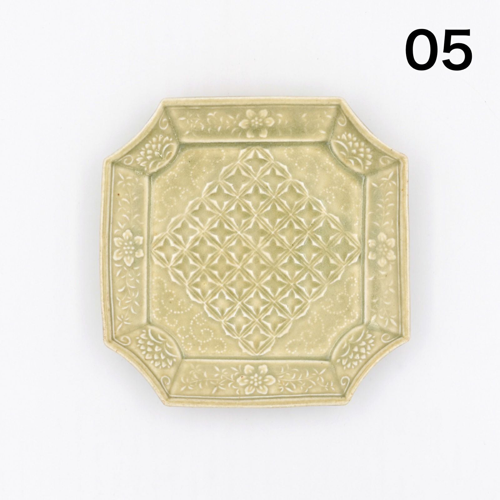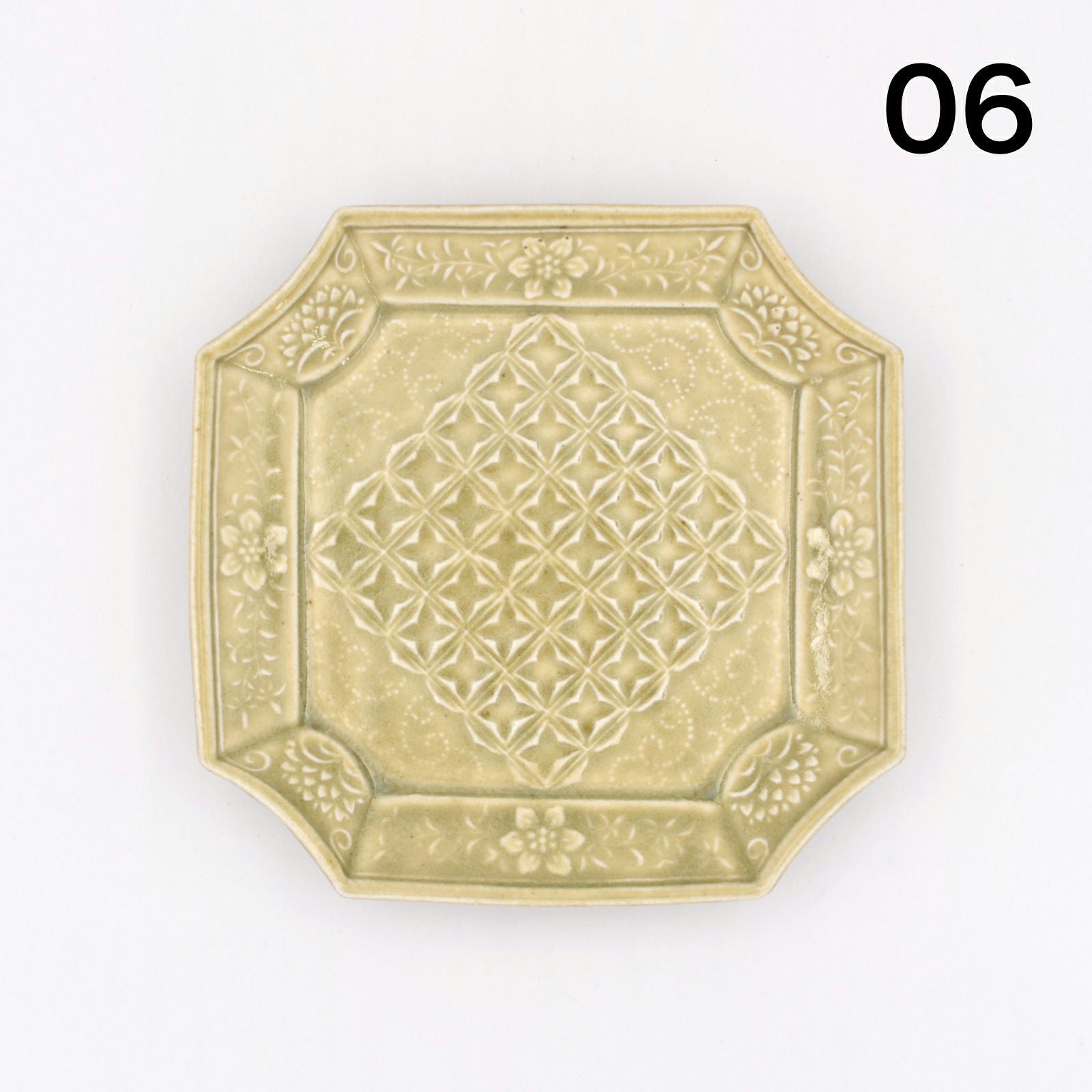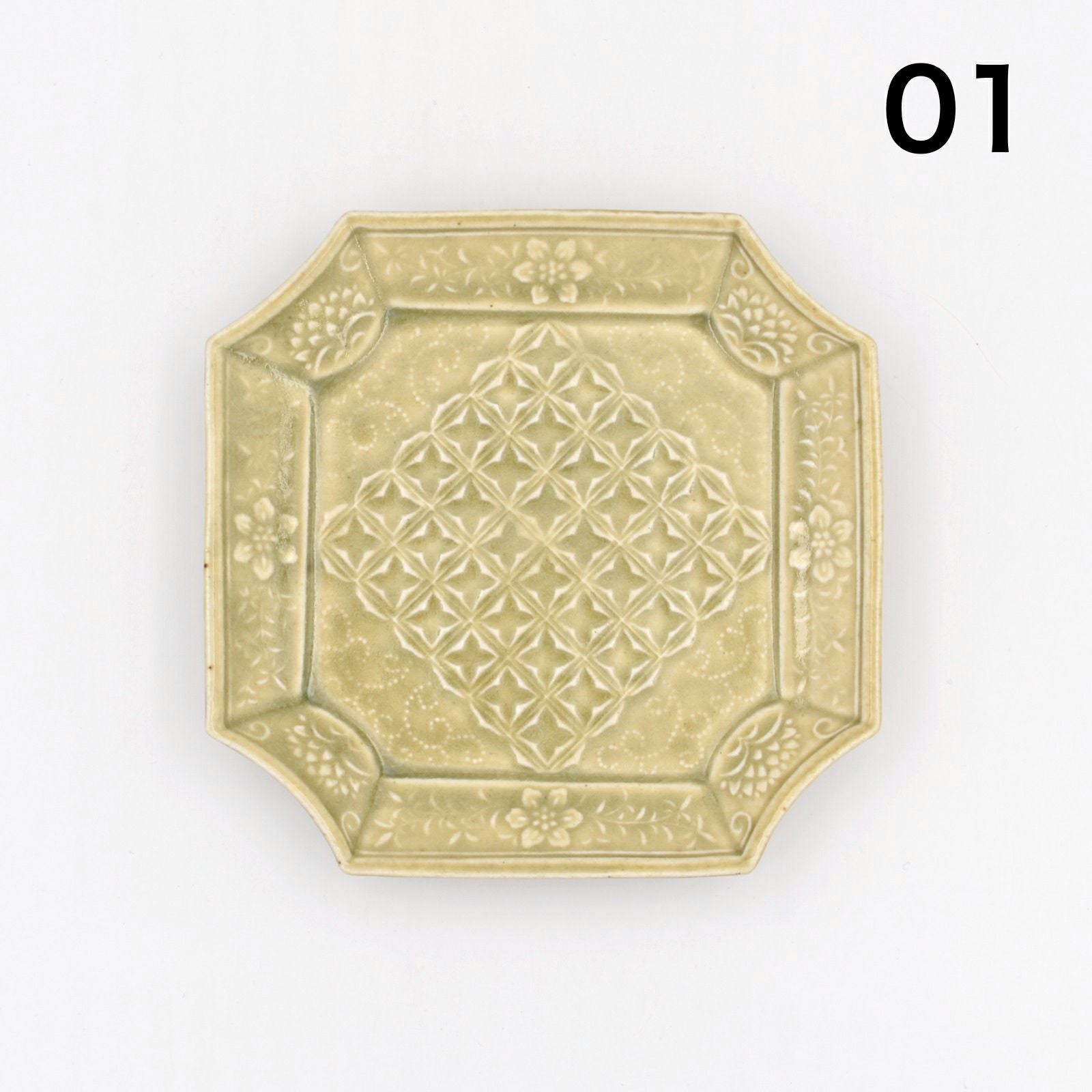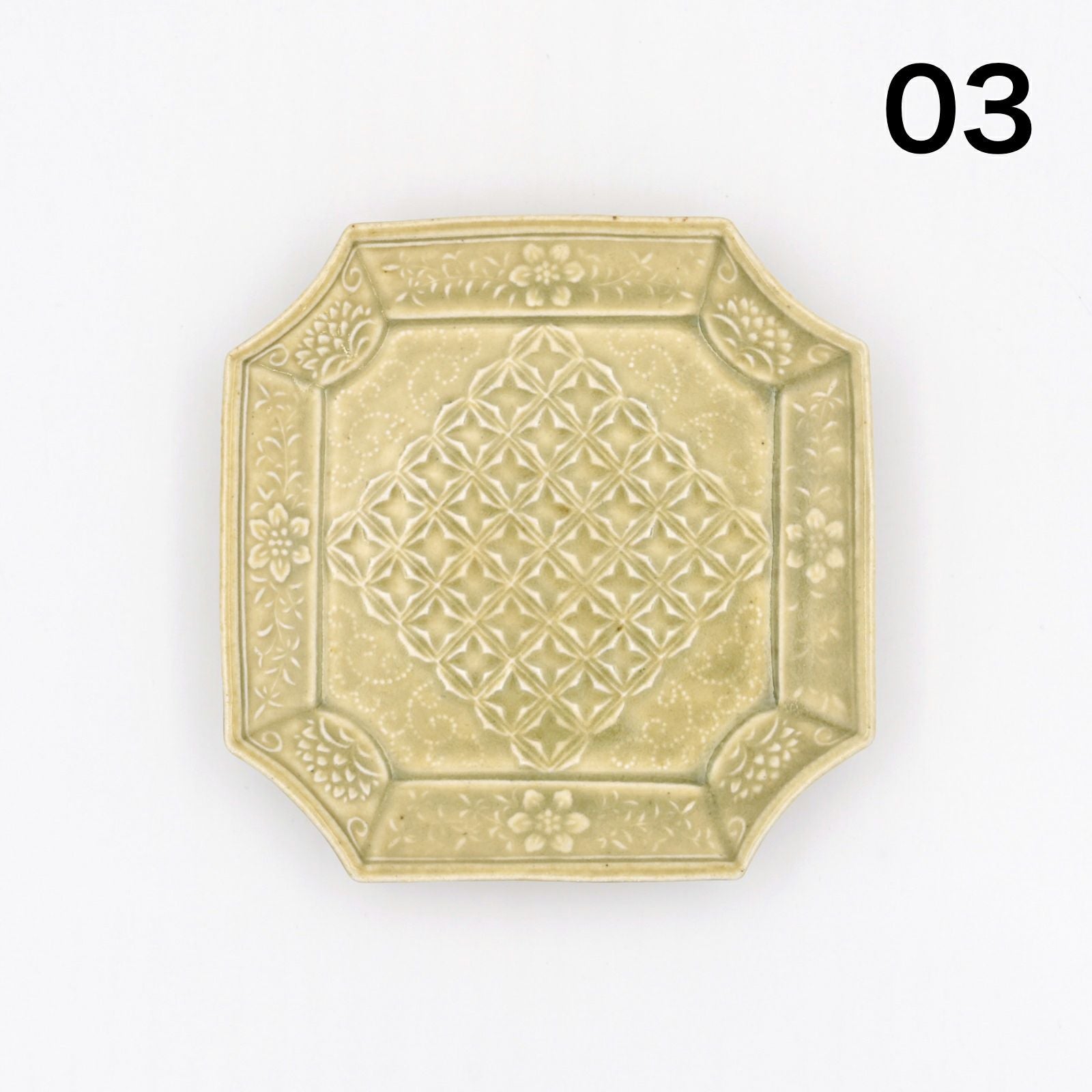 石田裕哉 灰釉陽刻隅切四方皿