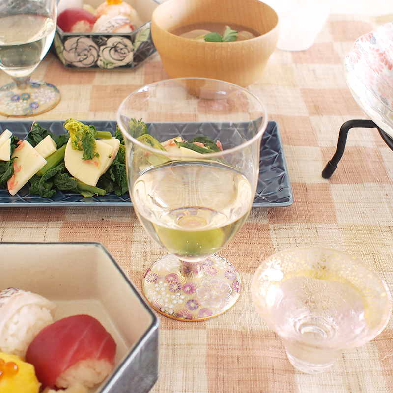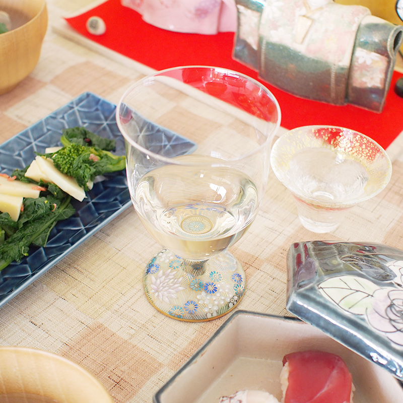 石川県の伝統工芸「九谷焼」と、国内最高峰の「手作り吹き硝子」を融合させた、清峰堂の九谷和グラス。 /令和 うすべに フリーグラ 13,750円(税込み)