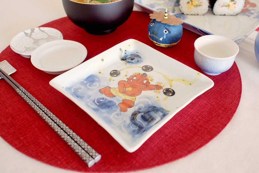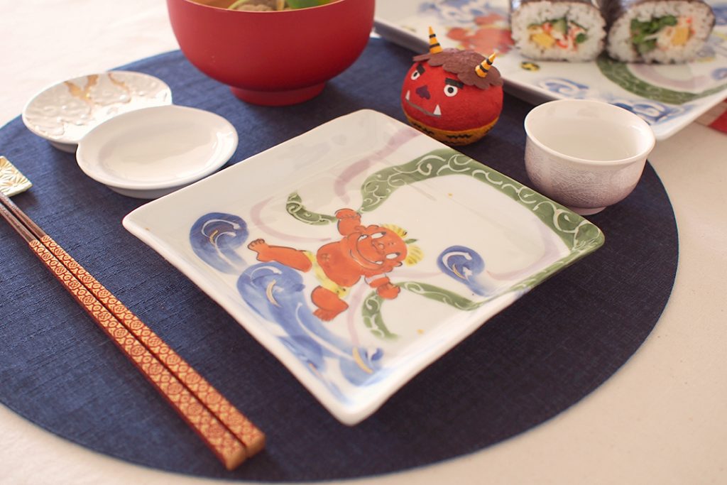 今年の恵方は「南南東」です。節分の邪気払いにぴったりの鬼絵の器を中心としたテーブルコーディネートのご紹介です。