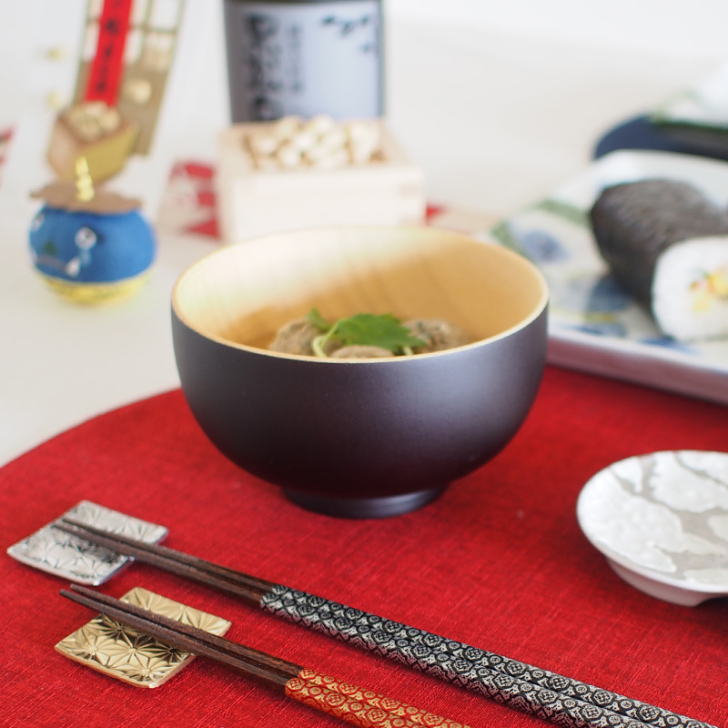 日本の伝統的な和柄をモチーフにした若狭塗箸と麻の葉紋様の金銀箸置きをペアセットにしました。/祝膳 古紋ペア 5,500円(税込)