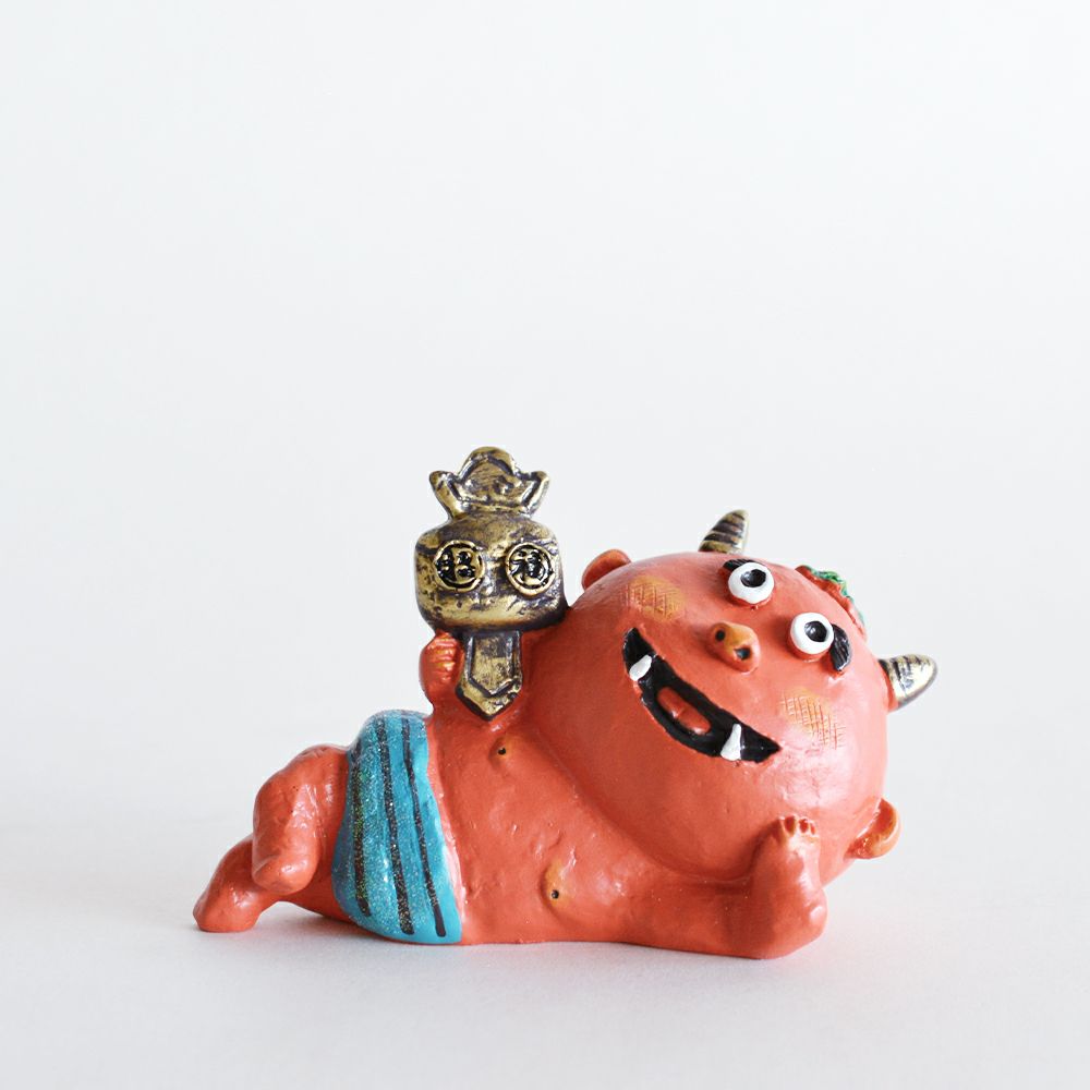 風水カラーで福を願い、厄をよけて笑顔を呼び込む風水鬼っ子です。9体セットに木製の什器が付きます。/風水鬼っ子 全員集合 13,200円(税込)